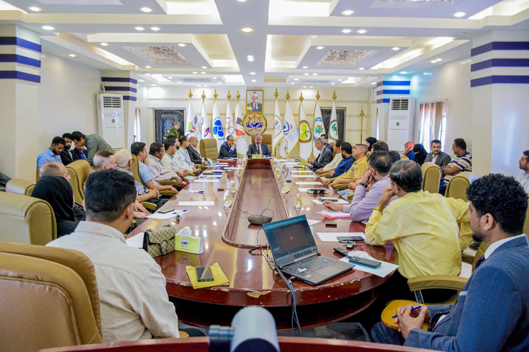 His Excellency the Minister of Transport, Mr. Mohsen Haidera Al-Amri, met today in the interim capital, Aden, with representatives of the private sector and shipping companies to discuss a number of difficulties and challenges facing their operations.
