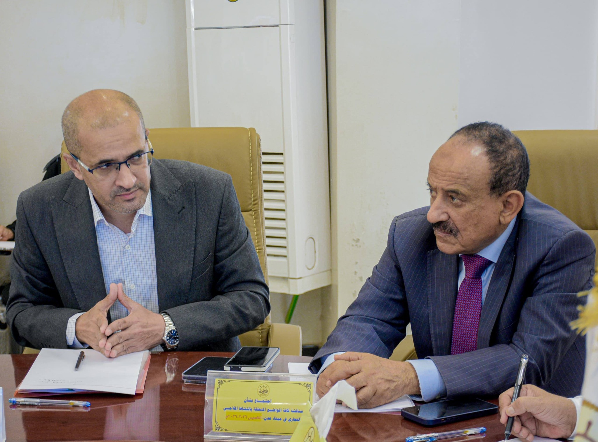 The meeting was attended by the Vice Chairman of the Board of Directors of the Red Sea Ports Corporation for Technical Affairs, Dr. Abdulmalik Al-Sharabi, and for Administrative Affairs, Mohammed Sabr, as well as the Chairman of the Maritime Chamber, Talib Salim, and a number of representatives from shipping companies and other relevant entities.